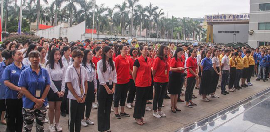 7:40分,民興電纜的全體成員就在辦公樓廣場整齊列隊,以精神飽滿狀態(tài)慶祝黨的生日。