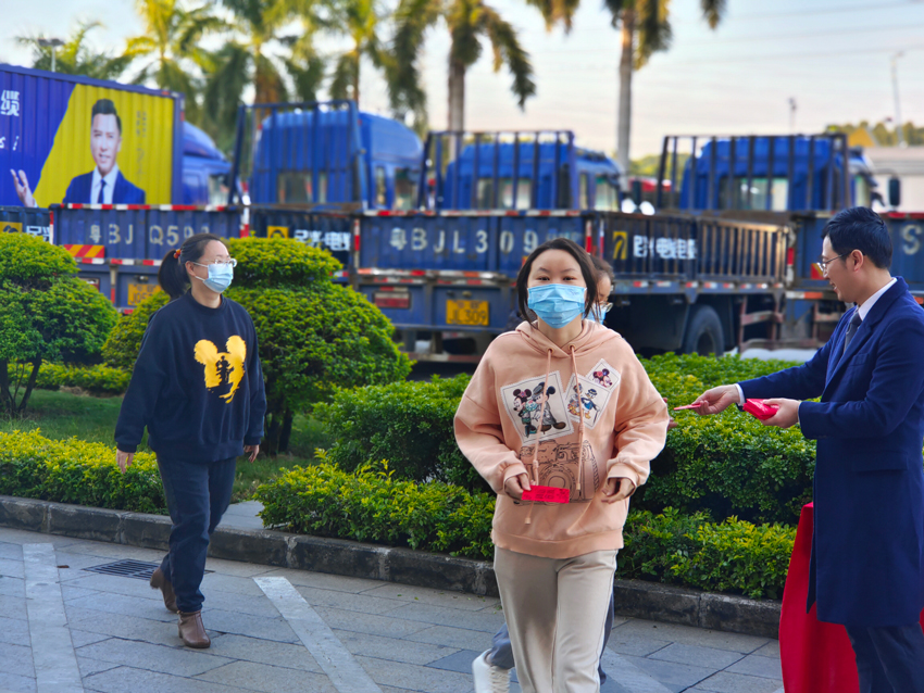 民興電纜總經(jīng)理楊彥為返崗員工派發(fā)開工利是