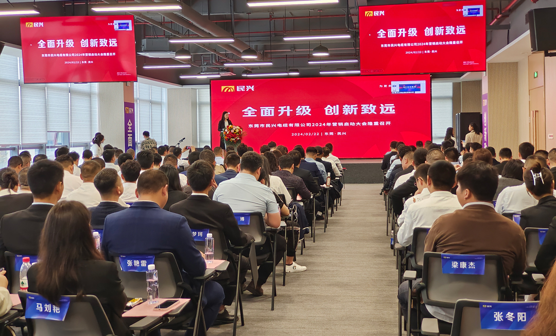 2月22日下午,民興電纜在東莞樟木頭新總部基地隆重召開以“全面升級(jí) 創(chuàng)新致遠(yuǎn)”為主題的2024年?duì)I銷啟動(dòng)大會(huì),公司總經(jīng)理?xiàng)顝⒊?wù)副總經(jīng)理張隆放等高層領(lǐng)導(dǎo),與來自全國各分公司辦事處的所有業(yè)務(wù)團(tuán)隊(duì)營銷精英代表等歡聚一堂,總結(jié)過去,共話未來,開啟新年新征程。