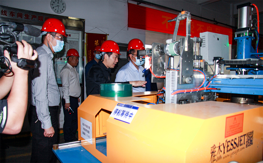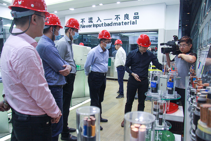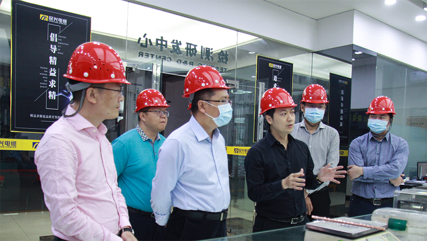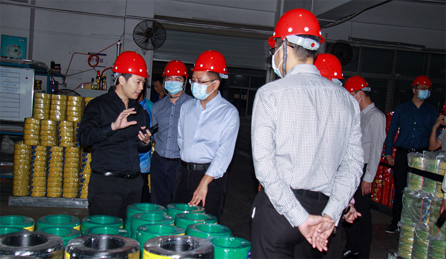 隨后,一行人又分別走訪了拉絲生產(chǎn)車間、檢測研發(fā)中心、交聯(lián)機生產(chǎn)車間等。調(diào)研中,楊總詳細匯報了企業(yè)在疫情影響之下努力克服不利因素,全力以赴抓生產(chǎn)經(jīng)營,促進企業(yè)安全生產(chǎn)等方面所做的工作;同時介紹了民興電纜最新研發(fā)的礦物絕緣防火電纜新品、生產(chǎn)技術(shù)、功能特性及市場前景等。